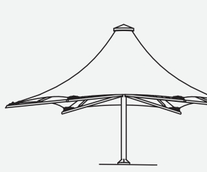 Merkezde tek bir direkle taşıtılan asma germe konikal şemsiyeler, mekanın sınırlı, insan sirkülasyonunun yoğun olduğu alanlarda, bir mimari eleman olarak… >>