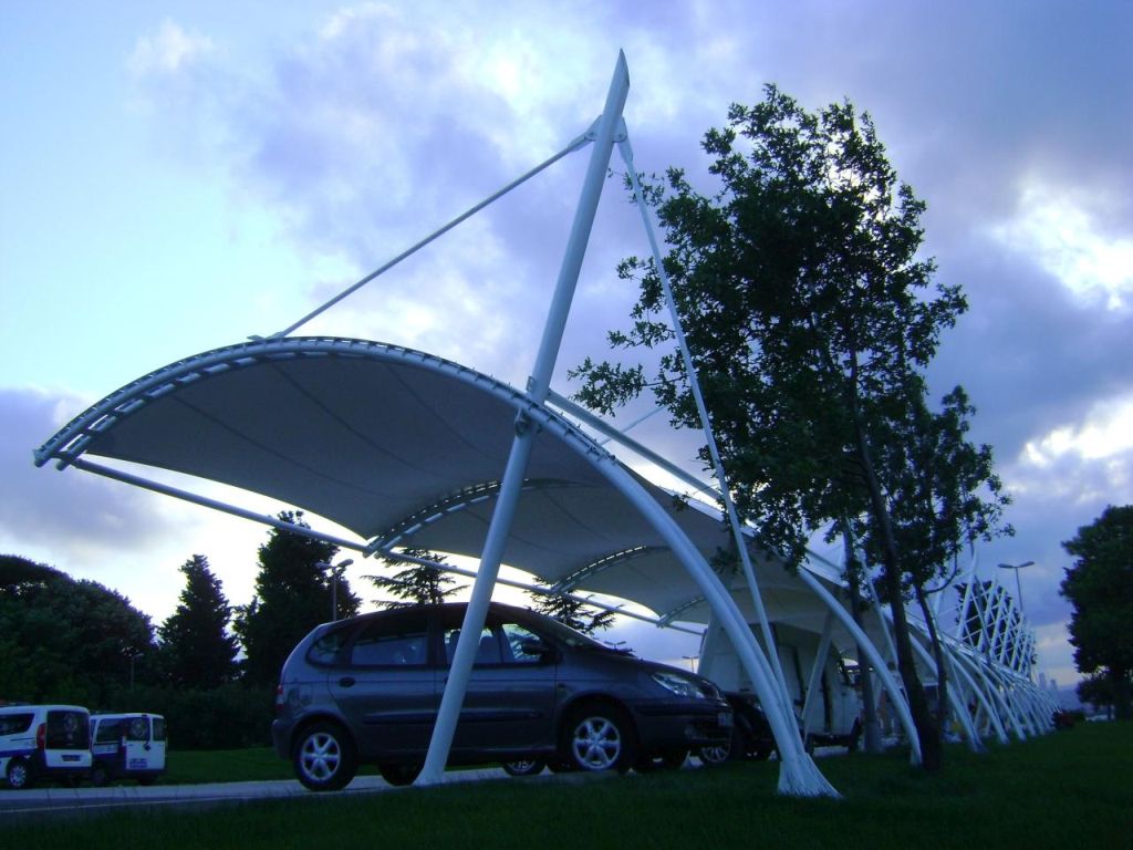 Asma germe membran otopark projemiz bütünleşik kemer formlardan oluşmaktadır. Her bir modül iki araçlıktır. Tasarım özellikle binek tipi araçlar dikkate alınarak yapıldı. Fakat panelvan tipi araçların da kullanabileceği bir yükseklik gözönünde bulunduruldu.