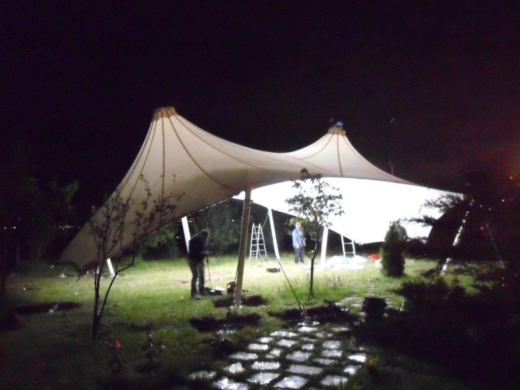 Asma germe yapı projemiz Prekons A.Ş. fabrika bahçesinde bulunmaktadır. Membran yapı, iki yana eğimli ikili bütünleşik konikten oluşmaktadır. Membran yüzeyler, iki yanda mümkün olduğunca yere doğru uzatılarak gölge alan artırılmaya çalışıldı. Membran yapı, fabrika çalışanları tarafından dinlenme alanı olarak kullanılmaktadır.